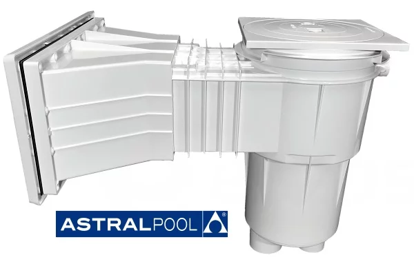 priključak: Ø 32 mm. Okrugli poklopac sa sistemom za pričvršćivanje opružnim kopčama. Visina poklopca se može podešavati i okretati kroz produljeno grlo, tako da sjedi savršeno u ravnini s rubnim kamenom. Hvatač lišća pričvršćen za bazu pomoću bajunetnog držača. Ugrađena košara. Preporučeni protok: 7,5 m3/h. Preporučuje se ugradnja jednog skimera na svakih 25 m2 vode površina.